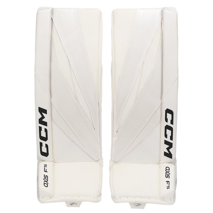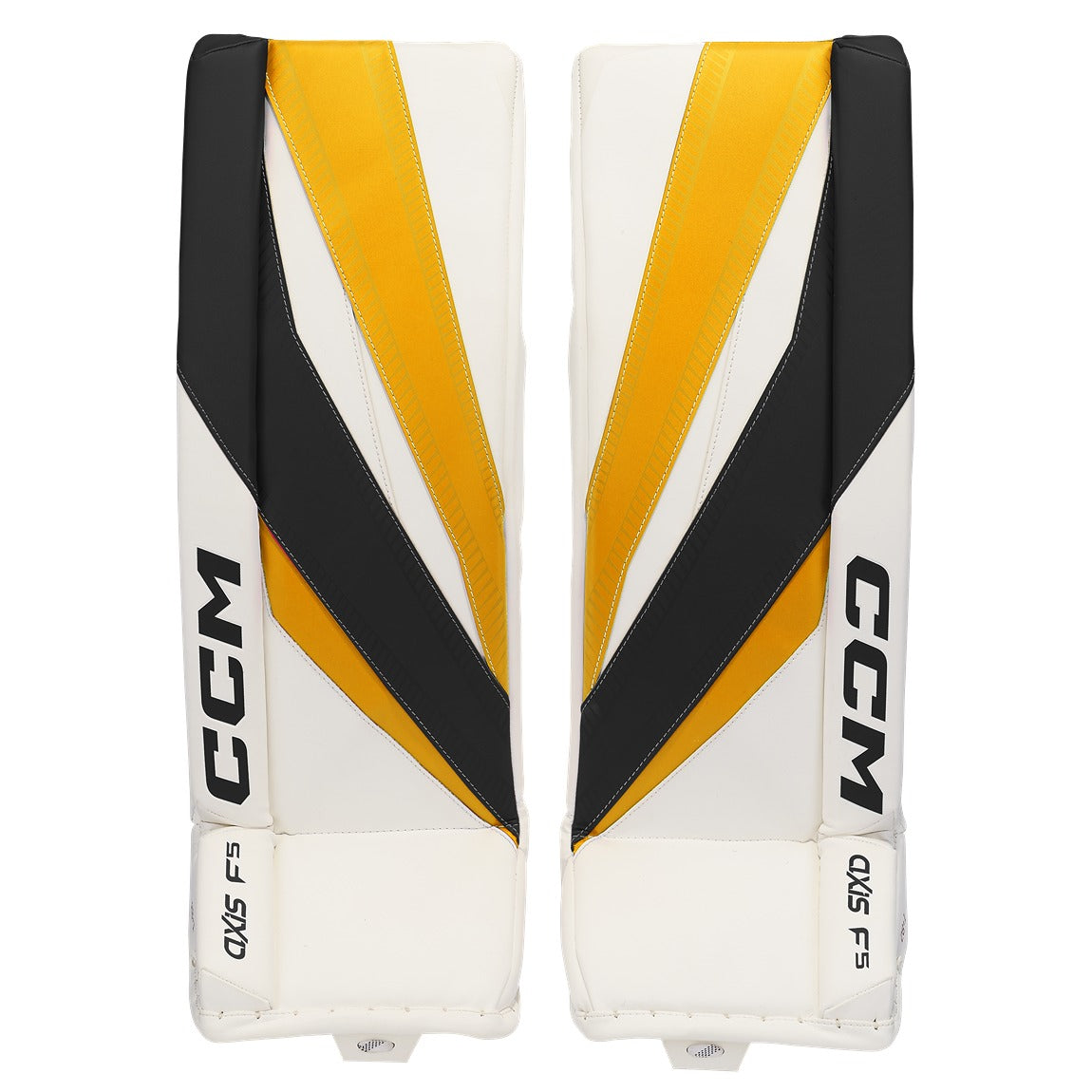 Equip young goalies with the CCM Axis F5 Goalie Pads. The lightweight LITECORE™ technology deflects rebounds away from the goal, and the DRS knee stack improves pad seal and balance. The QMSS2 straps provide quick and easy adjustments for a perfect fit and seamless butterfly movement.