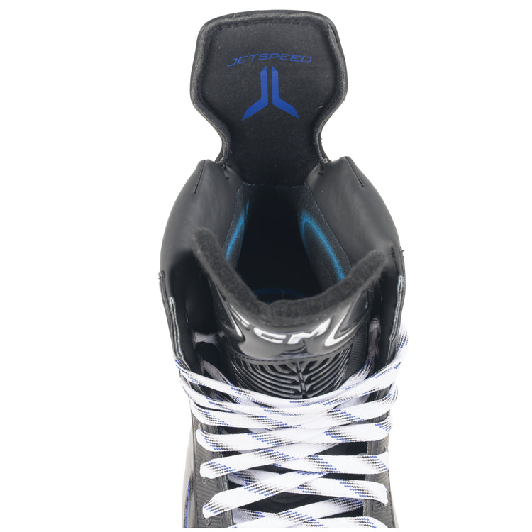 The JETSPEED XTRA SE youth skates deliver exceptional speed, agility, and comfort with a robust synthetic composite boot that balances support and flexibility. Featuring an HD microfiber liner and cushioned ankle pads for a snug, secure fit, along with a 5mm felt tongue reinforced with 3D mesh to minimize lace bite. The skates include a CCM Ortholite footbed for enhanced cushioning, and the CCM SpeedBlade holder comes equipped with pre-sharpened stainless steel blades to provide reliable stability and ready-to-use performance on the ice.