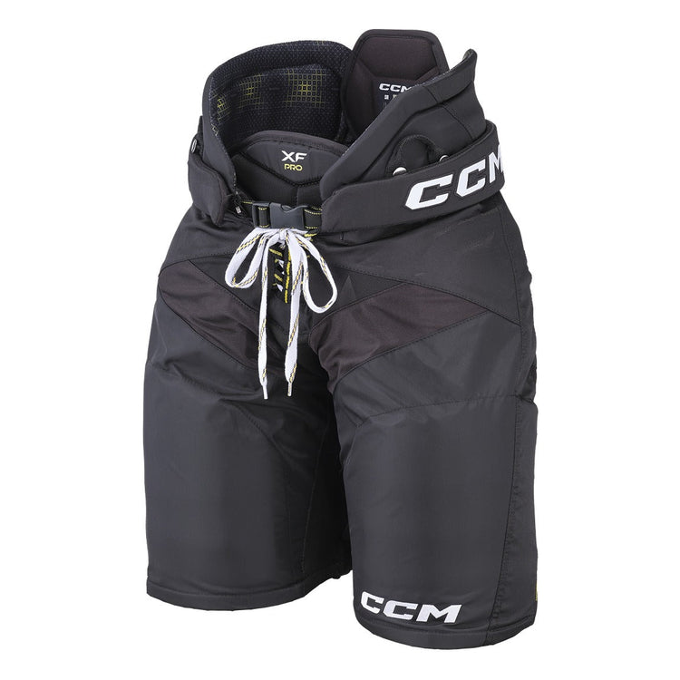 Presenting the CCM Tacks XF Pro Hockey Pants. Featuring complete anatomical protection, customizable fit, and excellent ventilation, these pants offer unmatched protection and comfort on the ice. Stay confident and secure with high-quality liner absorption and various protective caps, regardless of the game's intensity. Model HPXFPRO-SR.