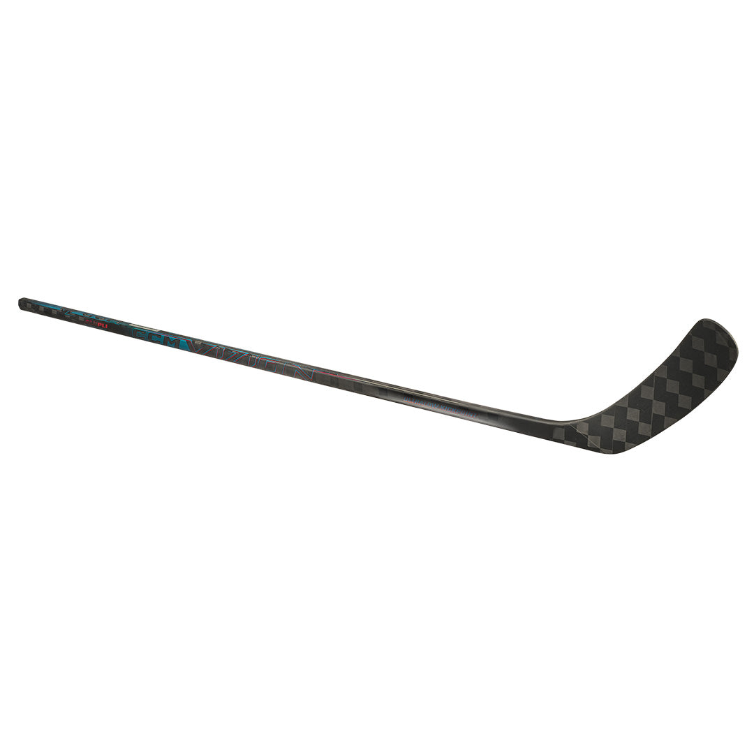Push your shot's boundaries with CCM's Vizion stick. Uniquely designed, the Vizion stick features innovative technology never seen before. The revolutionary top shaft shape is tailored for intermediate size hands, offering exceptional comfort, enhancing forearm strength, and minimizing wrist strain. The ALUPLI Composite, a hybrid of aluminum and carbon, serves as a slash shield, reducing cracks and damage during intense plays. The combination of the redesigned Ultra Low Kickpoint for easier loading, Vizion's new Shaft geometry, and the new Ultralight Blade delivers the fastest release available.