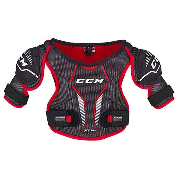 The brand new CCM JetSpeed FT350 shoulder pads are designed to be very lightweight and provide outstanding freedom of movement while maintaining protection.