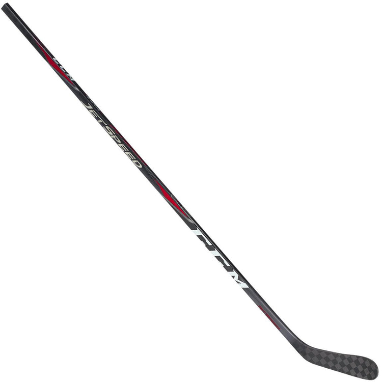 Designed for the fast pace of today's game, the new JetSpeed stick includes a hybrid kick point, a new shape, and the Jetstream blade. The hybrid kick point creates a power hinge effect, allowing players to fully load the shaft without twisting. The JetSpeed shape offers a unique mix of comfort and control, while the JetStream blade uses CCM's patented multi-channel blade and special dampening material for a balance of lightness and feel. The structure is reinforced with Sigmatex spread-tow technology throughout, making it one of the most advanced products available.