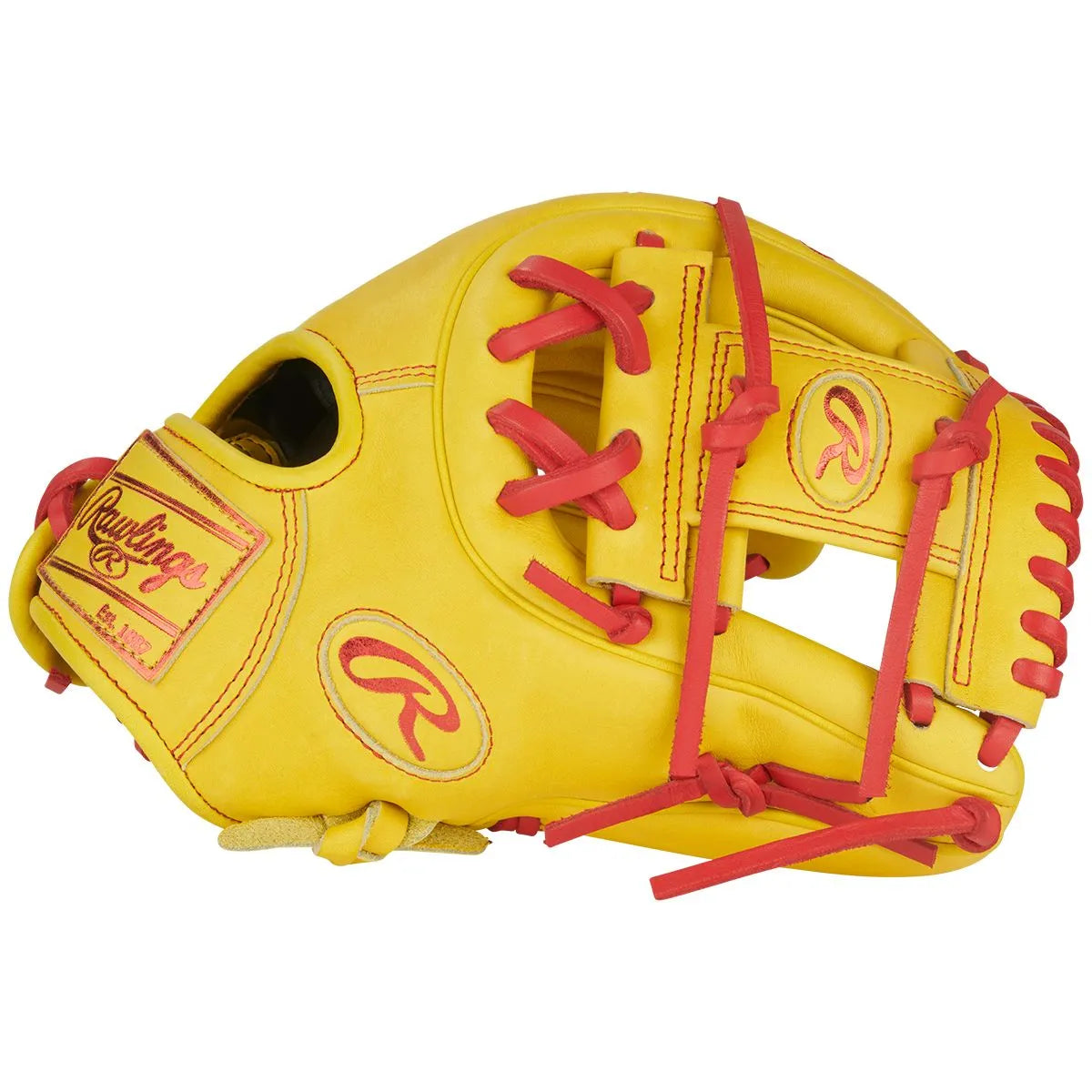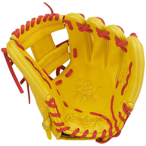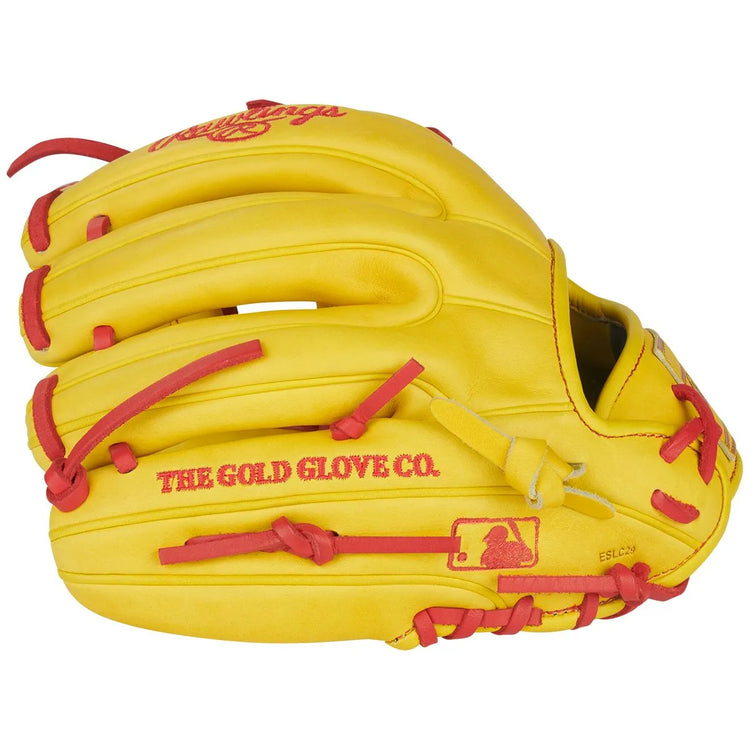 This glove also features Rawlings’ popular Contour Fit, which includes slimmer finger stalls and a tighter hand opening—ideal for players with smaller hands or those who prefer a more snug and controlled feel. Constructed from premium U.S. steerhide, it delivers the durable, high-performance quality trusted by countless pro players. Inside the glove, a deer tanned cowhide palm lining enhances comfort and feel, while thermoformed wrist padding offers a secure fit that holds steady throughout the game. Pro-grade leather laces reinforce the glove’s structure and longevity. Finished in a bold Yellow and Scarlet colorway, this glove blends eye-catching style with elite-level performance.