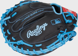 Its all-leather shell comes ready to go with minimal break-in time, and the Black/Columbia Blue colorway brings standout energy to every frame and throw. Perfect for catchers leveling up their game.