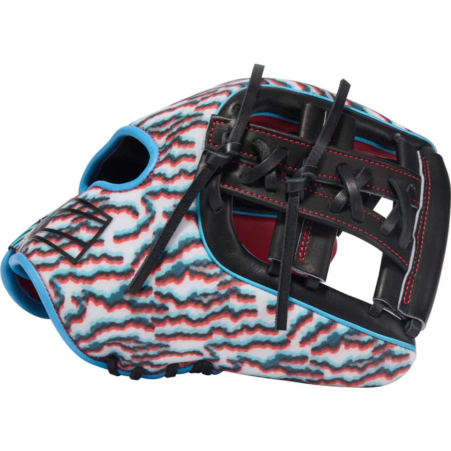 This glove brings next-level energy with a bold sublimated back shell that features a black and white wave design, accented by a scarlet red palm and black web. Light blue trim adds the perfect pop of contrast to finish off the glove’s striking style. Built with REV1X technology, this glove delivers the perfect blend of lightweight flexibility, long-term structure, and comfort on every play.