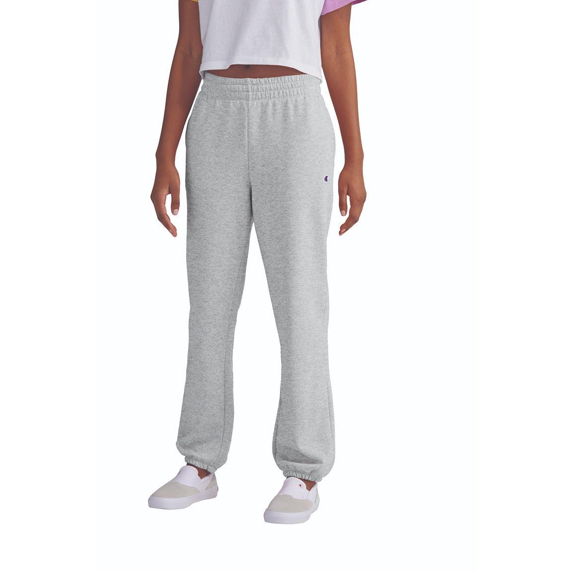 Presenting the Champion Powerblend Sweatpants C Logo for women. Crafted for maximum comfort, these oversized sweatpants feature warm and durable fleece for a lasting fit. With minimized pilling and shrinkage, enjoy stylish and comfortable lounging for years. Model M5922.