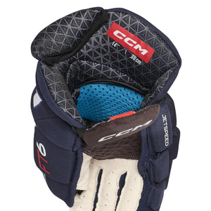 The CCM JETSPEED FT6 hockey gloves offer exceptional comfort and protection with their anatomically contoured design that matches the shape of your hand and their reinforced Sensalast palm. You can rely on the protective features not to hinder your movements, while the advanced AER-TEC thermoregulation system keeps you dry and comfortable in any situation.